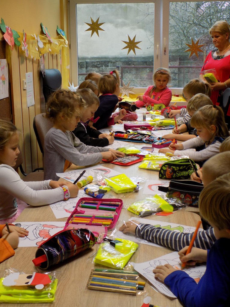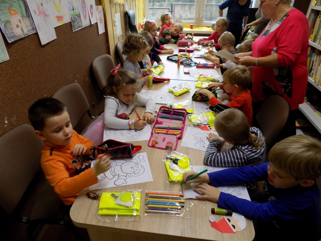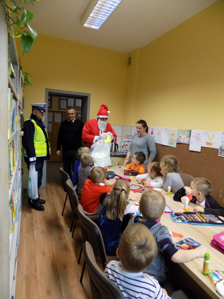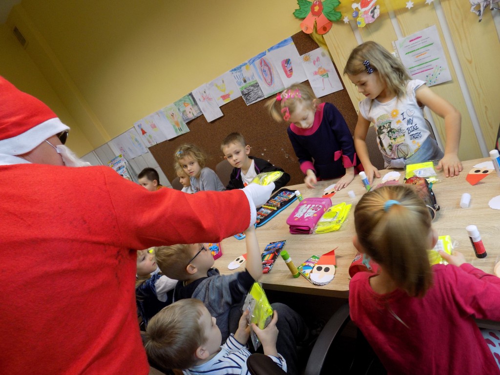 Mikołajki to chyba jedno z najbardziej ulubionych świąt według dzieci. Z tej okazji jeszcze dziś w Filii nr 1 5-latki z Zespołu Szkół nr 2 świętowały to mikołajowe święto. Dzieci kleiły Mikołaja z figur geometrycznych, kolorowały postać Świętego, a także wysłuchały bajki o przygodzie, którą chyba każdy z nas chciałby przeżyć z Mikołajem! Niespodzianką okazała się być wizyta Mikołaja, który dotarł do nas wraz z policjantem z KPP Wieruszów. Uczestnicy zajęć dostali odblaskowe prezenty w ramach akcji „Z Mikołajem bezpiecznie”.