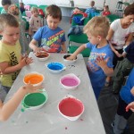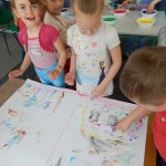 12 maj 2016 Autor: Aneta Możdżanowska Kategoria: Aktualności, Oddział dla dzieci Tagi: Tydzień bibliotekDziś odwiedziły nas „Pszczółki” z Przedszkola Samorządowego nr 1 wraz z opiekunkami. I podobnie jak z innymi grupami czytaliśmy bajki, wierszyki, a potem malowaliśmy palcami. Dzieci najpierw stworzyły własny obraz, potem malowały chatkę z piernika. Na koniec układaliśmy puzzle z bohaterami bajkowymi. Było to gwarne i pracowite przedpołudnie.