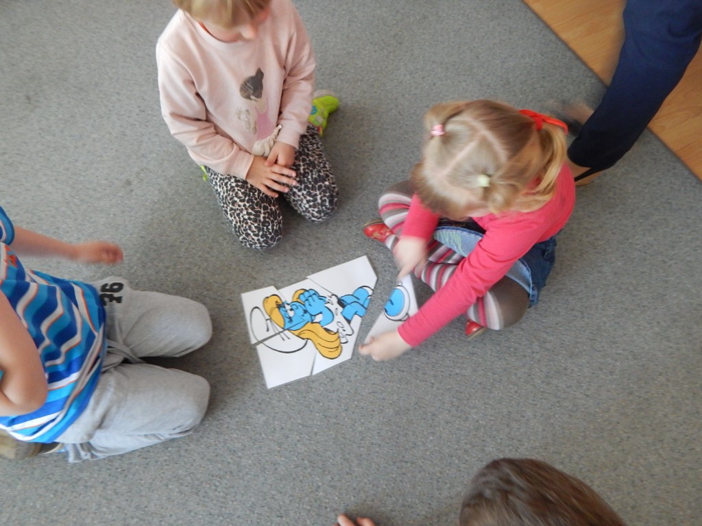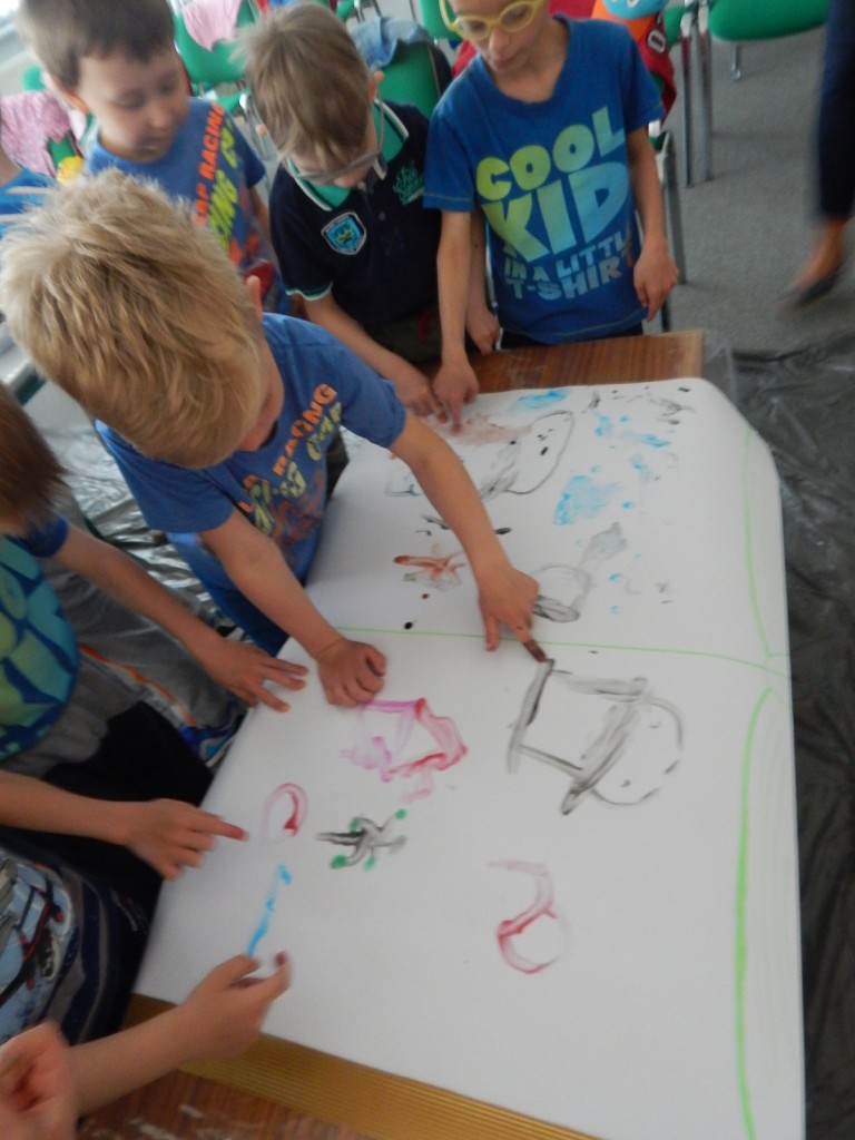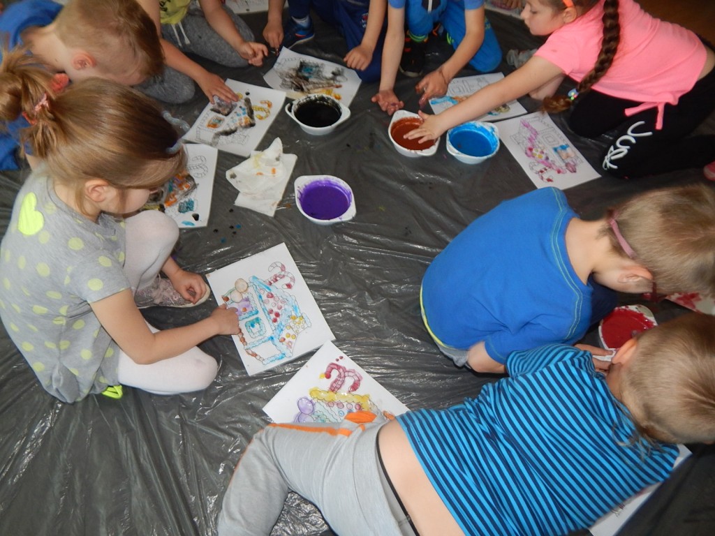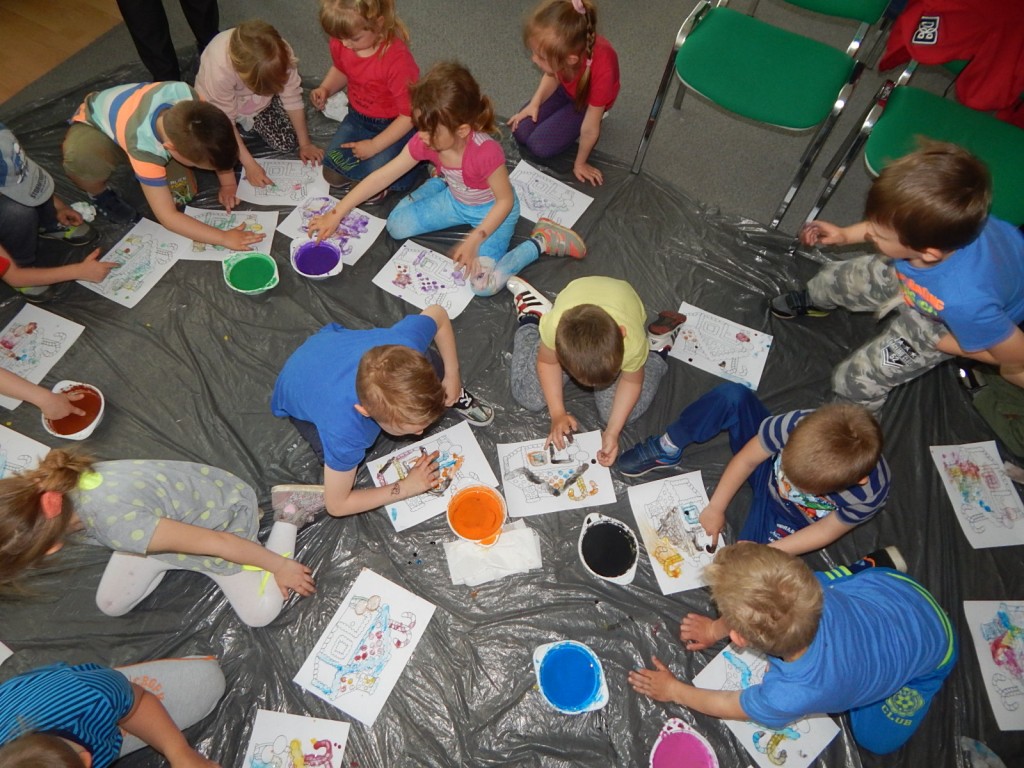 12 maj 2016 Autor: Aneta Możdżanowska Kategoria: Aktualności, Oddział dla dzieci Tagi: Tydzień bibliotekDziś odwiedziły nas „Pszczółki” z Przedszkola Samorządowego nr 1 wraz z opiekunkami. I podobnie jak z innymi grupami czytaliśmy bajki, wierszyki, a potem malowaliśmy palcami. Dzieci najpierw stworzyły własny obraz, potem malowały chatkę z piernika. Na koniec układaliśmy puzzle z bohaterami bajkowymi. Było to gwarne i pracowite przedpołudnie.