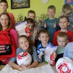06 maj 2016 Autor: Aneta Możdżanowska Kategoria: Aktualności, Filia Biblioteczna nr 3 Tagi: Fb 3Dzieci uczestniczące w zajęciach wychowawczo-czytelniczych prowadzonych przez Filię nr 3 MGBP w Wieruszowie w marcu i kwietniu wspólnie zbierały punkty z promocyjnych opakowań Kinder, Duplo i Nutella. Oto dowód, że się opłacało. Wspólnymi siłami wygraliśmy piłki i plecak z podpisem Jerzego Dudka- polskiego piłkarza grającego na pozycji bramkarza. Ponadto weźmiemy udział w losowaniu nagrody głównej, którą jest 5- osobowy bilet na mecz 12 czerwca na Stadionie Energa Gdańsk i spotkanie z Jerzym Dudkiem. Nasza współpraca zakończyła się sukcesem, co utwierdza nas w przekonaniu, że warto wytrwałość i współpraca w grupie pozwalają osiągać najlepsze efekty.