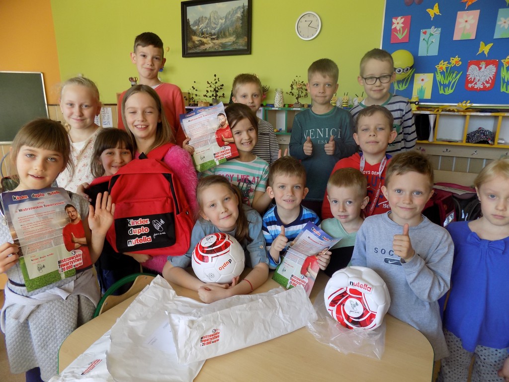 06 maj 2016 Autor: Aneta Możdżanowska Kategoria: Aktualności, Filia Biblioteczna nr 3 Tagi: Fb 3Dzieci uczestniczące w zajęciach wychowawczo-czytelniczych prowadzonych przez Filię nr 3 MGBP w Wieruszowie w marcu i kwietniu wspólnie zbierały punkty z promocyjnych opakowań Kinder, Duplo i Nutella. Oto dowód, że się opłacało. Wspólnymi siłami wygraliśmy piłki i plecak z podpisem Jerzego Dudka- polskiego piłkarza grającego na pozycji bramkarza. Ponadto weźmiemy udział w losowaniu nagrody głównej, którą jest 5- osobowy bilet na mecz 12 czerwca na Stadionie Energa Gdańsk i spotkanie z Jerzym Dudkiem. Nasza współpraca zakończyła się sukcesem, co utwierdza nas w przekonaniu, że warto wytrwałość i współpraca w grupie pozwalają osiągać najlepsze efekty.